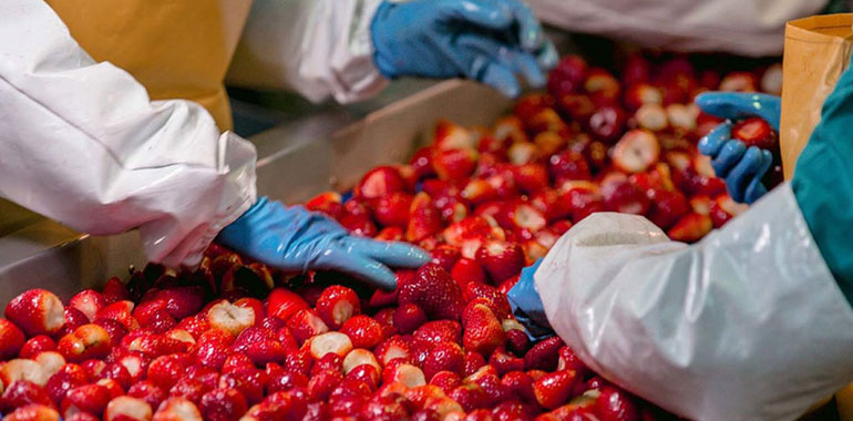 Fruits are washed, inspected, and prepared according to type—whether peeling, destemming, slicing, or calibration.